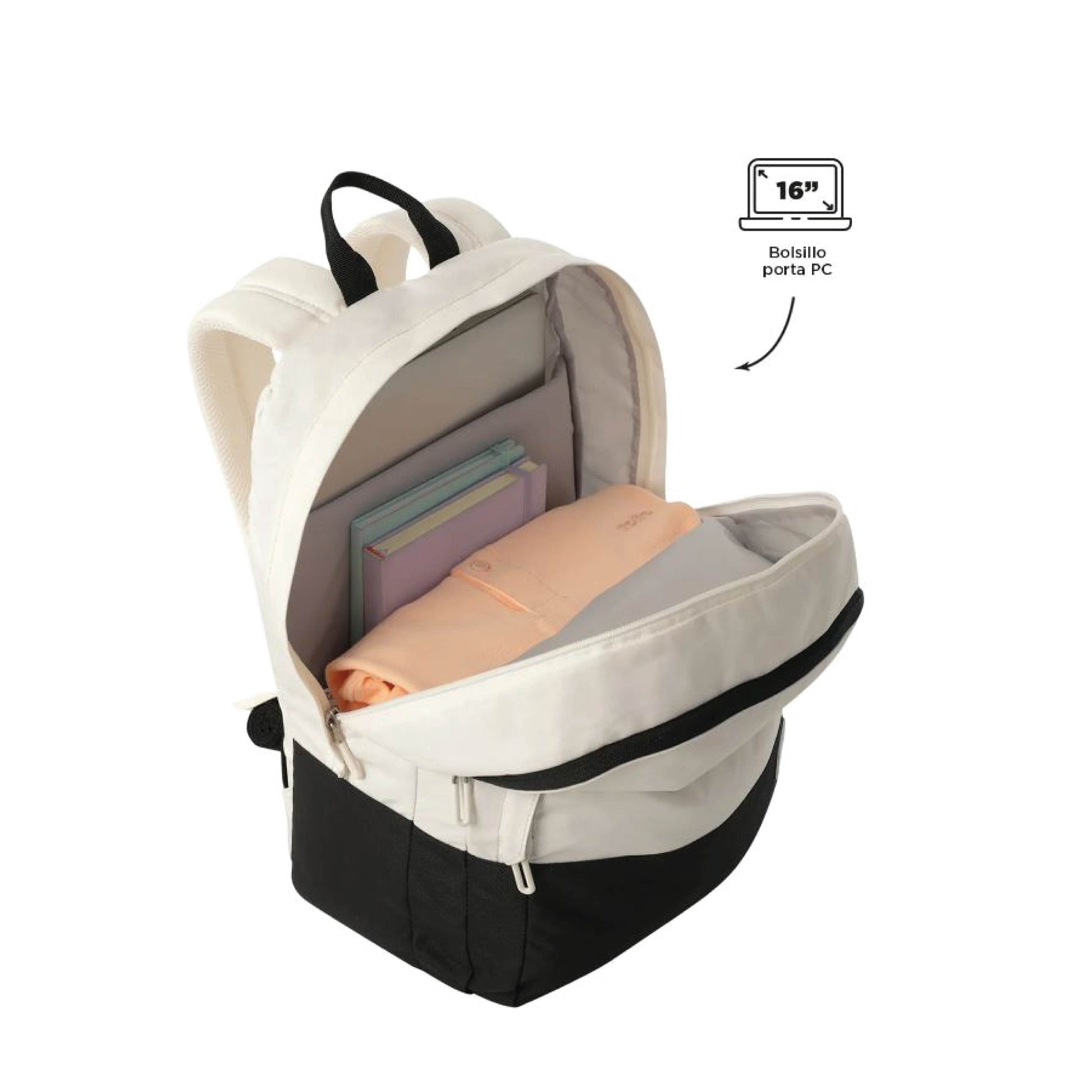 Mochila Totto Porta PC 16" Toluca 2.0 Color Blanco y negro